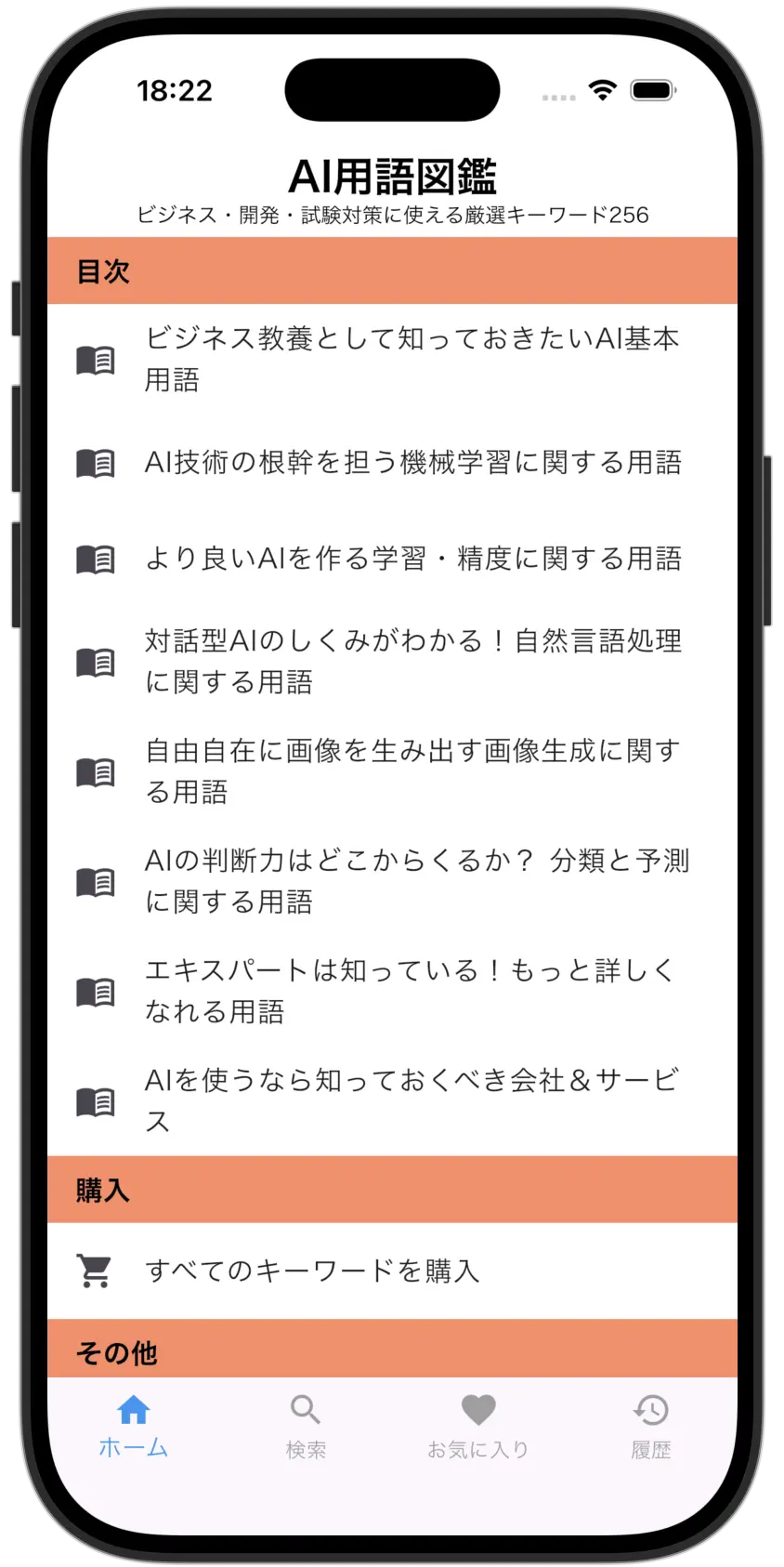 ただし、書籍には各用語について、「用語に関連する話」が含まれていますが、アプリには含まれていません。